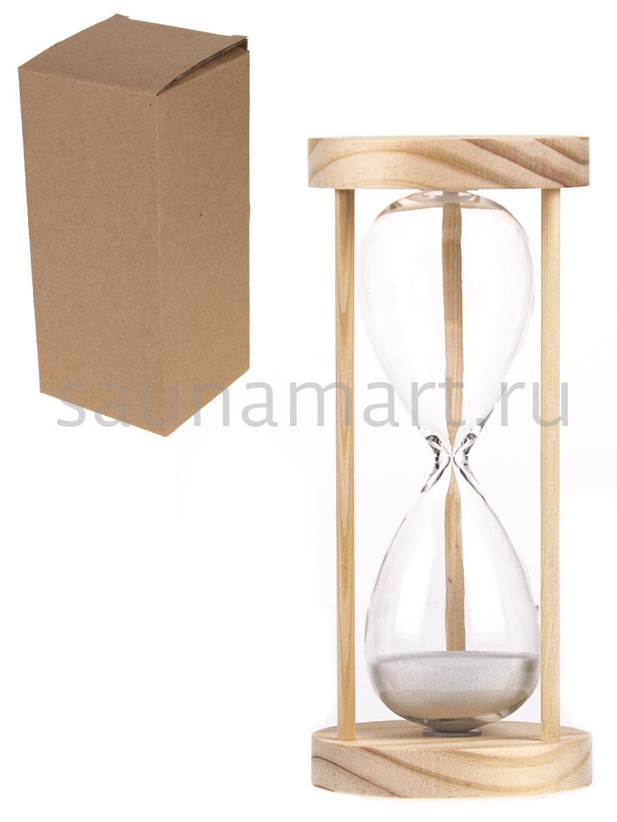 Песочные часы позволяют засекать четко определенные отрезки времени, что весьма полезно в условиях парильного помещения, поскольку в бане можно проводить различного рода косметологические процедуры. Многие из них требуют отмечать четко определенные отрезки времени. Песочные часы отлично справляются с этой задачей в условиях высокой влажности и высоких температур. Сочетание светлого дерева и алюминиевого основания придают часам стильный изысканный внешний вид.