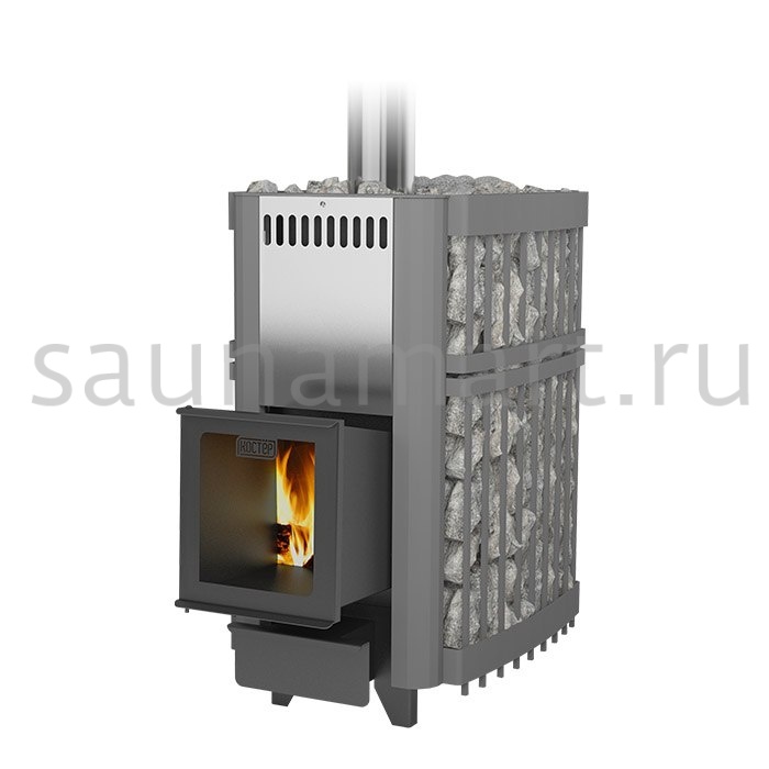2. Теплоотдающие площади топки печей «Костёр» на 25-30 % больше, чем у аналогов. При этом, за счет особенностей конструкции поверхности эти нагреваются мощнее. Камни нагреваются сильнее. Верхняя часть дефлектора (наиболее нагретый элемент конструкции топки) изготовлена из нержавеющей стали и имеет вогнутую форму, благодаря чему является эффективной парообразующей поверхностью. Перегретый, по-настоящему легкий пар можно получать всего через 30 минут после затапливания печи.