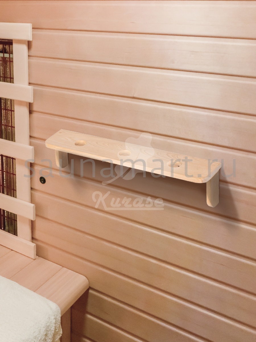 Прямая одноярусная полка с тремя отверстиями для хранения ароматических запарок, веничков, сухоцветов.