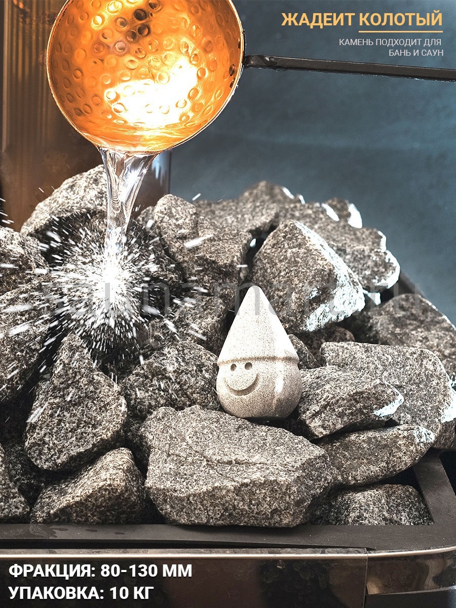 Благодаря своей плотной структуре, жадеитовые камни отличаются длительным сроком службы. Колотые камни прекрасно подходят для заполнения резервуара печи в сауне. Шероховатая поверхность камней гарантирует более активное парообразование.
