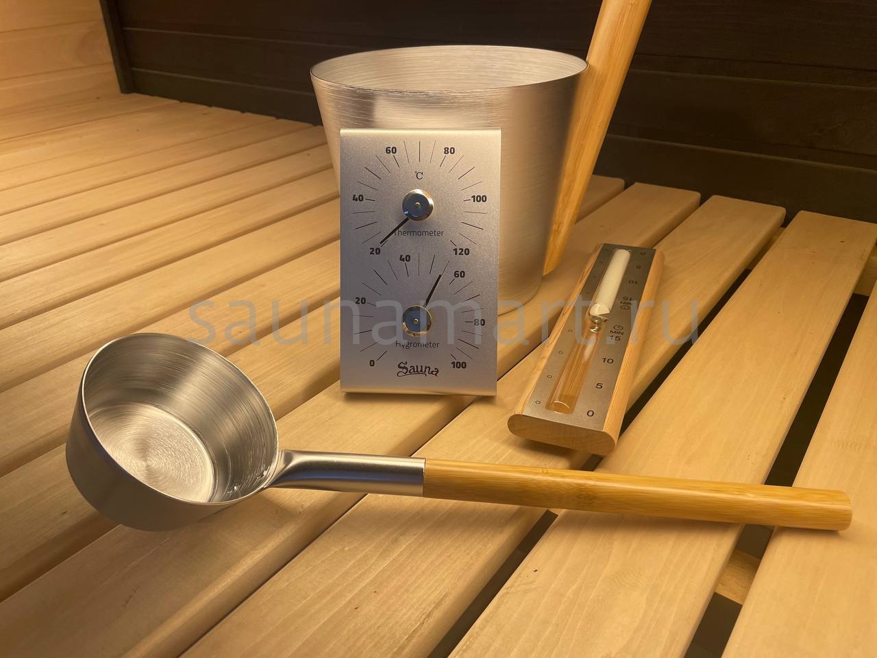Набор ушат черпак песочные часы термогигрометр SILVER Kurase