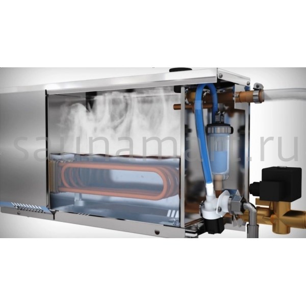 Парогенераторы Helix Pro обеспечивают прекрасную обстановку в сауне и позволяют Вам получить изумительные ощущения от её посещения. Парообразователь производителен, высокостабилен и очень надёжен, что даёт возможность применять его в спа салонах. Контроль за работой устройства особенно прост, поскольку производится при помощи особой панели управления с сенсорным дисплеем. Автоочистка парообразователя запрограммирована на определённые отрезки времени, или же активируется при помощи автоматического дренажного вентиля при выключенном устройстве. Таким образом в парообразователе не накапливается известь. Парообразователь также можно запрограммировать на автоматическую дозировку и распыление ароматических эссенций.