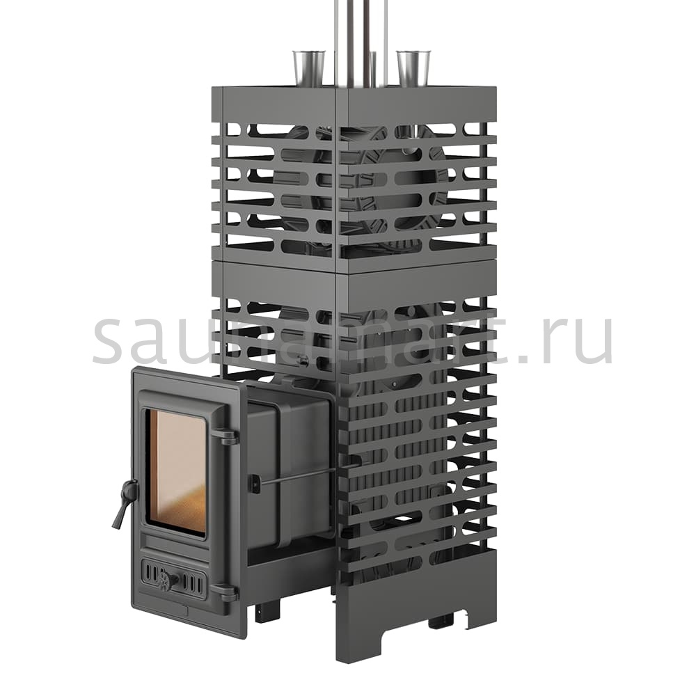 Внешний парообразующий контур представлен сеткой-конвектором, в которую размещается до 120 кг камней для бани. Сетка изготовлена из стали, выполнена в дизайне Астон и окрашена термостойкой краской.