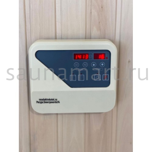 Пульт управления элeктрoкaмeнкой (электропечью для сауны) ПУЭКМ "Ресурс" цифровой программируемый до 15 кВт включительно. Пульт устанавливается в предбаннике, а датчик заводится в парилку. Датчик с кабелем идут в комплекте с пультом. Возможно удлинение кабеля, методом наращивания. Длина кабеля с датчиком температуры 3 метра.