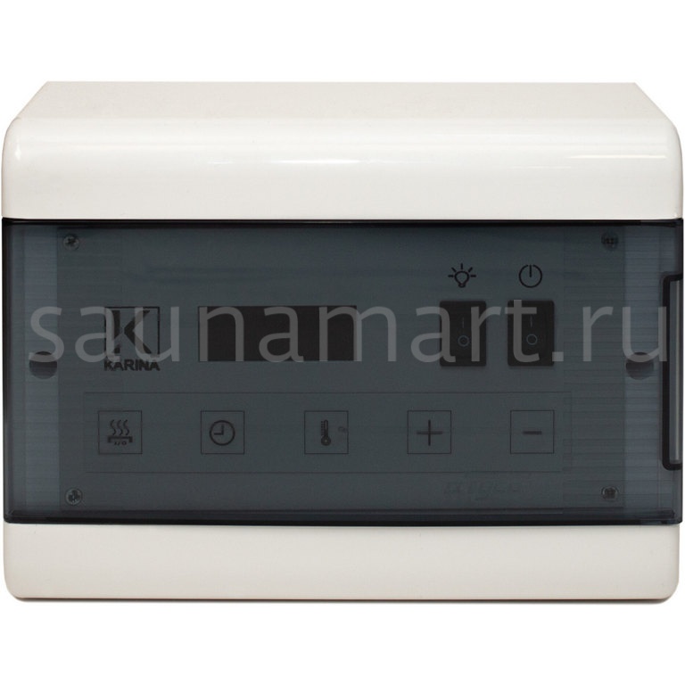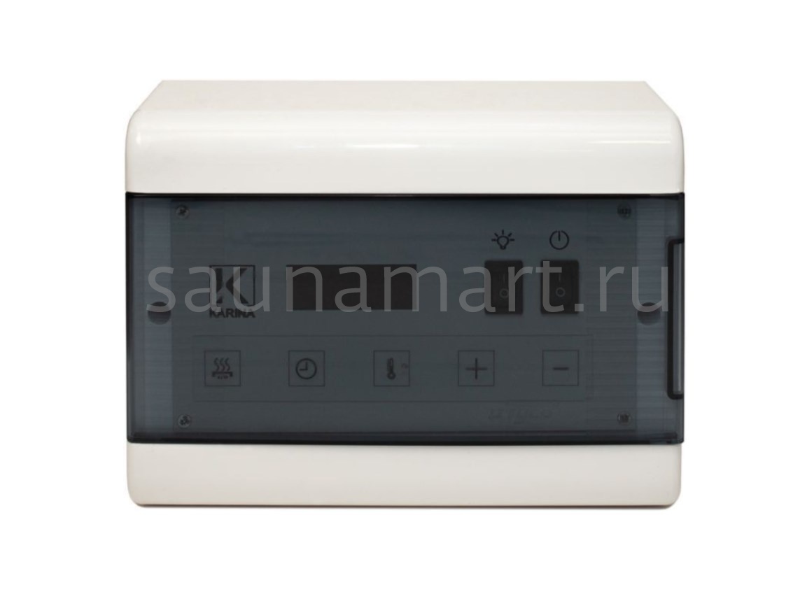 Пульт управления Karina Case C18 White Ca-18kW-Wh предназначен для электрокаменок с мощностью до 18 кВт. Пульт можно устанавливать только снаружи парильного помещения. При достижении температуры 125 °C прибор отключается в аварийном режиме.