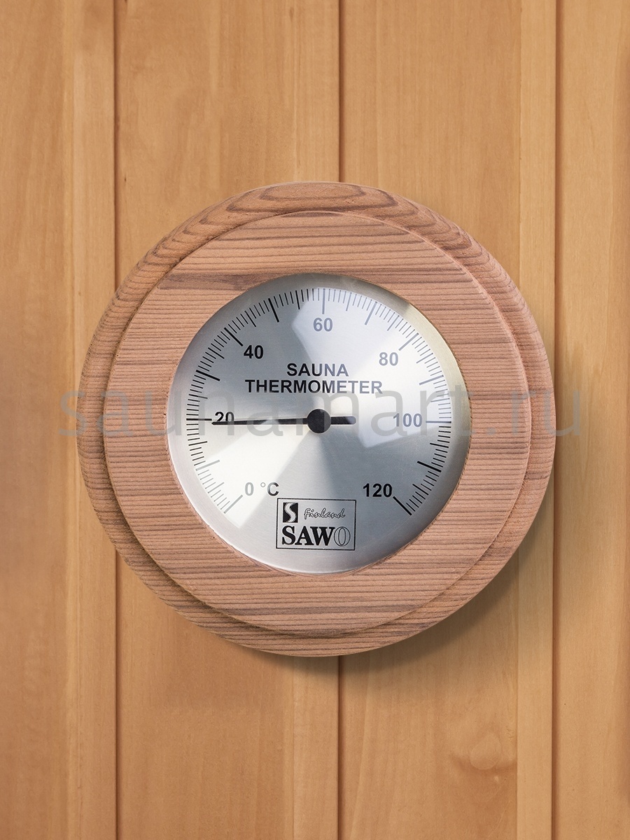 Sawo Термометр 230-ТD отличается надежностью, долговечностью и практичностью. Корпус прибора выполнен из кедра, очень прочного материала, который не выделяет смолы. Диаметр 13,5 см. В широкой раме из кедра находится круглый циферблат, под жаропрочным стеклом. Градуировка шкалы термометра варьируется в пределах от 0 до 120 градусов по Цельсию. Этого максимума достаточно для комфортных банных процедур. Нагнетание в парном помещении большей температуры нежелательно, так как может быть опасно для здоровья. Предусмотрена возможность калибровки прибора. Термометр SAWO прекрасно впишется в интерьер любой бани или сауны. Термометр Саво подойдет для использования в любом парильном помещении, как в условиях русской бани, финской сауны так и хамама. Помните, чтобы проведённое в парной время оказало благоприятный эффект на здоровье и самочувствие, необходимо тщательно соблюдать температурный режим парения. Высокий стандарт качества SAWO гарантирует надежность и точность измерений термометра.