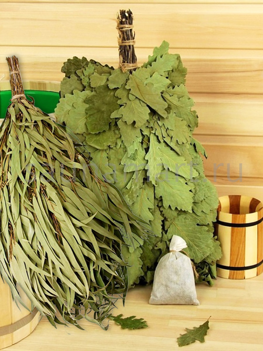 Листья и веточки дуба богаты эфирными маслами и дубильными веществами. Дубовый веник эффектно выглядит, ароматен, а благодаря особой форме резных и широких листьев он способен отлично впитывать пар.