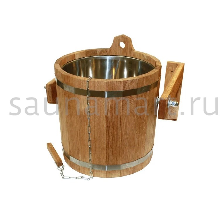 Обливное устройство для бани и сауны. Объем 16 литров. Материал изготовления - древесина дуба. Внутренняя вставка из нержавеющей стали предотвращает появление грибка и ржавчины.